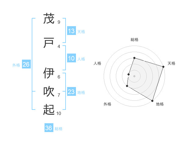 茂戸 伊吹起さんの天格は13画の5点!