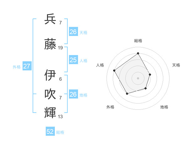 兵藤 伊吹輝さんを姓名の画数から五運を鑑定