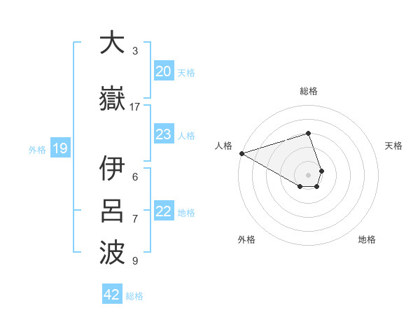 大嶽 伊呂波さんを姓名の画数から五運を鑑定