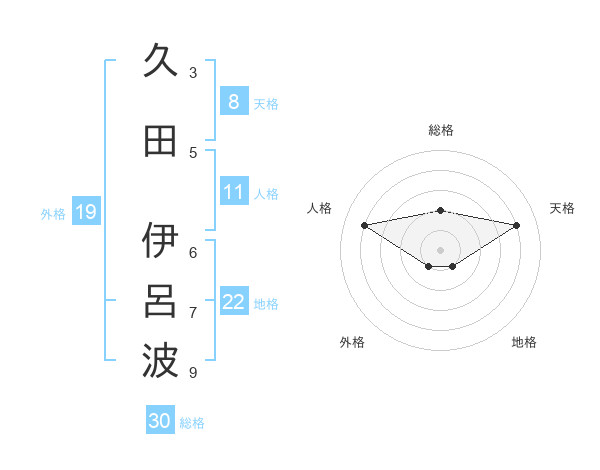 久田 伊呂波さんの天格は8画の4点!