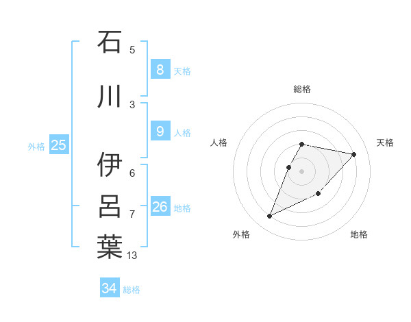 石川 伊呂葉さんを姓名の画数から五運を鑑定