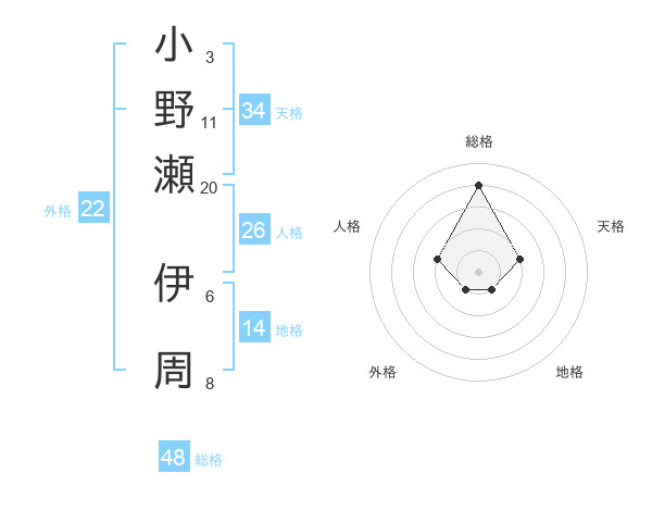 小野瀬 伊周さんの総格は48画の4点!