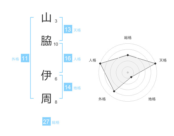 山脇 伊周さんを姓名の画数から五運を鑑定