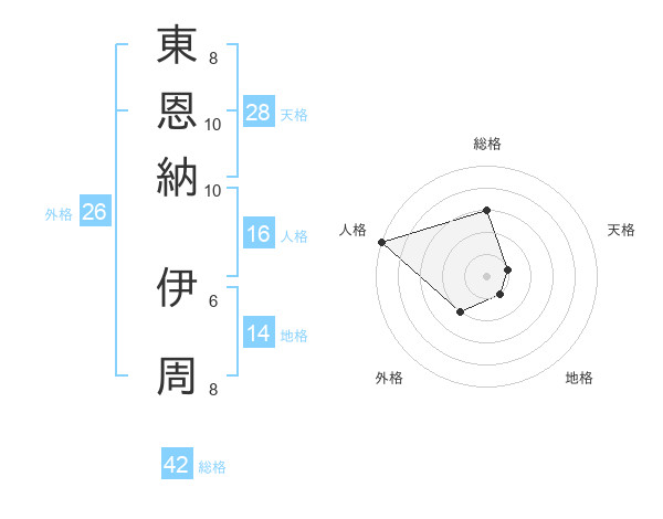 東恩納 伊周さんの総格は42画の3点!