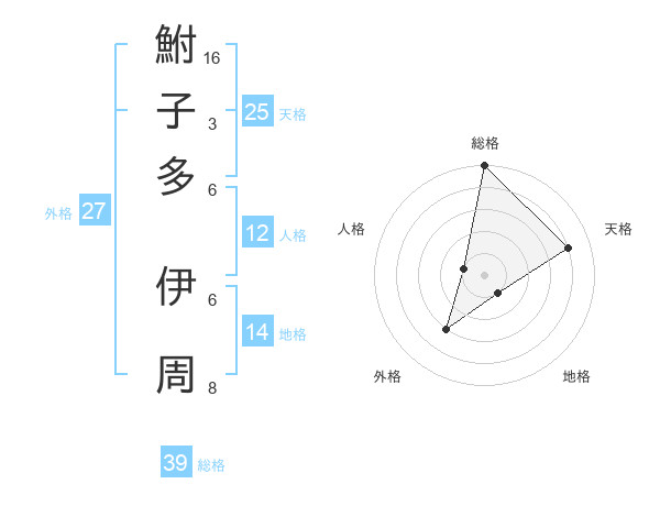 鮒子多 伊周さんを姓名の画数から五運を鑑定