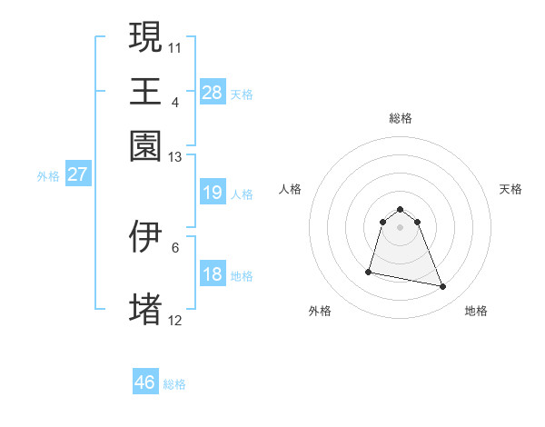 現王園 伊堵さんの総格は46画の1点