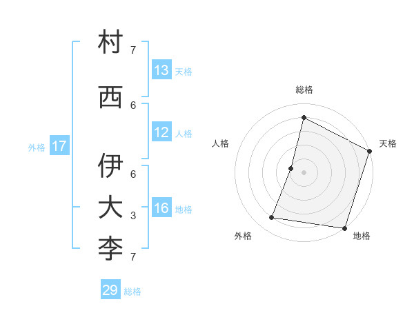 村西 伊大李さんの総格は29画の4点!