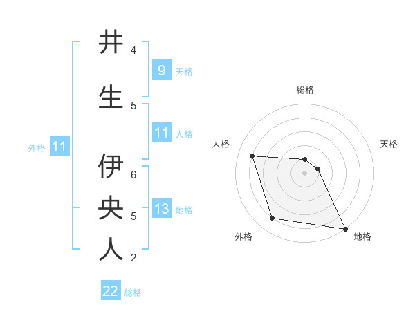 井生 伊央人さんの総格は22画の1点!