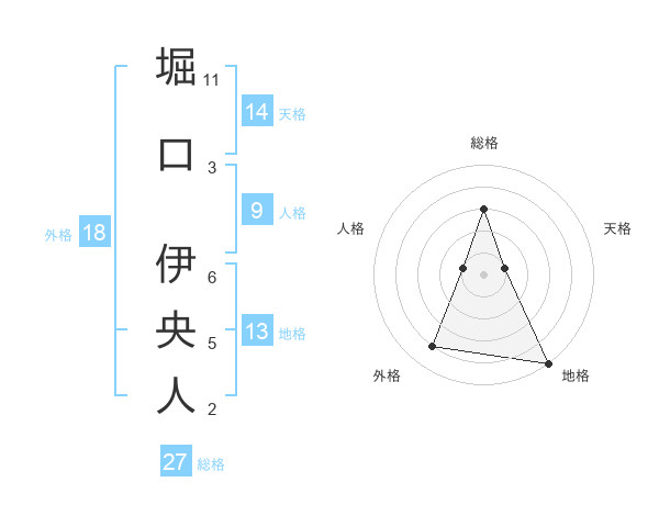 堀口 伊央人さんの総格は27画の3点!