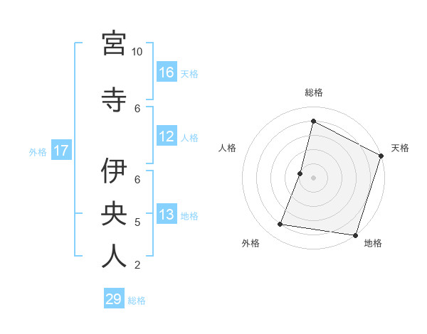 宮寺 伊央人さんを姓名の画数から五運を鑑定