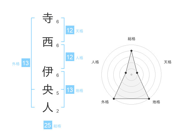 寺西 伊央人さんを姓名の画数から五運を鑑定