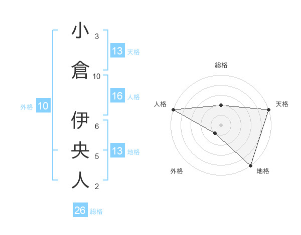 小倉 伊央人さんの天格は13画の5点!