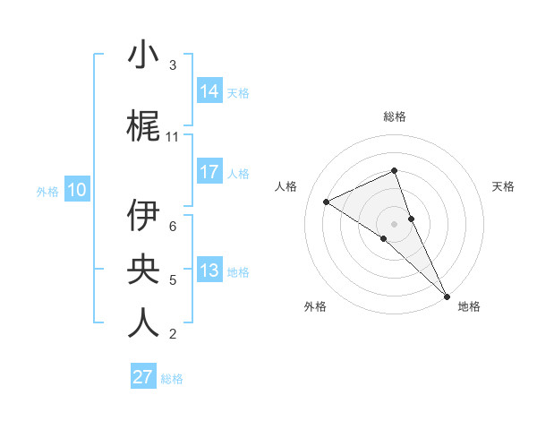 小梶 伊央人さんを姓名の画数から五運を鑑定