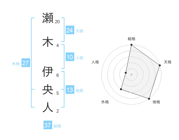 瀬木 伊央人さんを姓名の画数から五運を鑑定