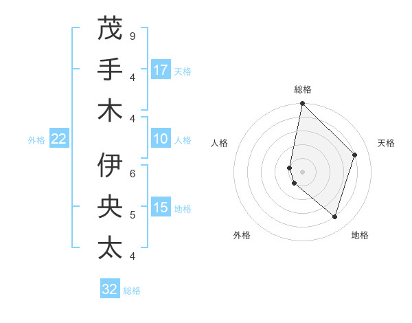 茂手木 伊央太さんを姓名の画数から五運を鑑定