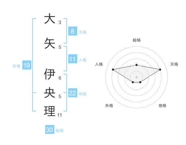 大矢 伊央理さんを姓名の画数から五運を鑑定