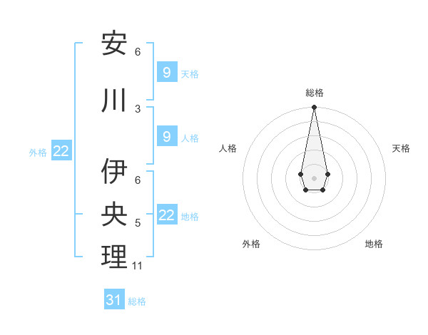 安川 伊央理さんの総格は31画の5点!