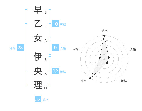 早乙女 伊央理さんの総格は32画の5点!