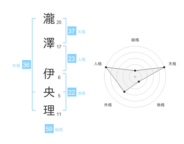瀧澤 伊央理さんを姓名の画数から五運を鑑定