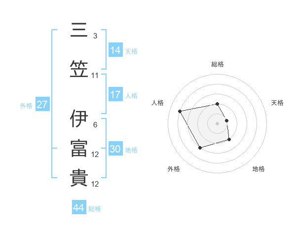 三笠 伊富貴さんの総格は44画の2点!