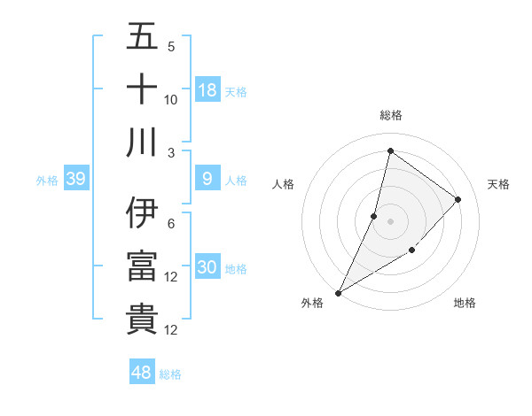 五十川 伊富貴さんを姓名の画数から五運を鑑定