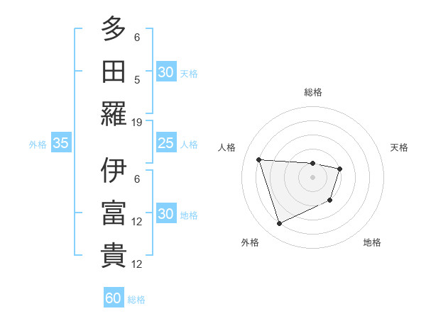 多田羅 伊富貴さんを姓名の画数から五運を鑑定