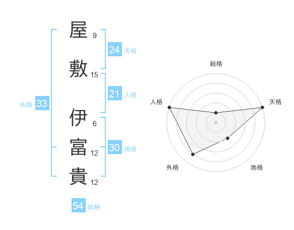 屋敷 伊富貴さんを姓名の画数から五運を鑑定