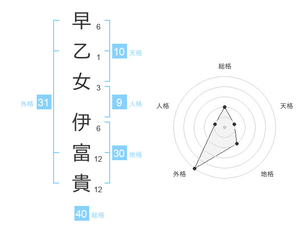 早乙女 伊富貴さんを姓名の画数から五運を鑑定