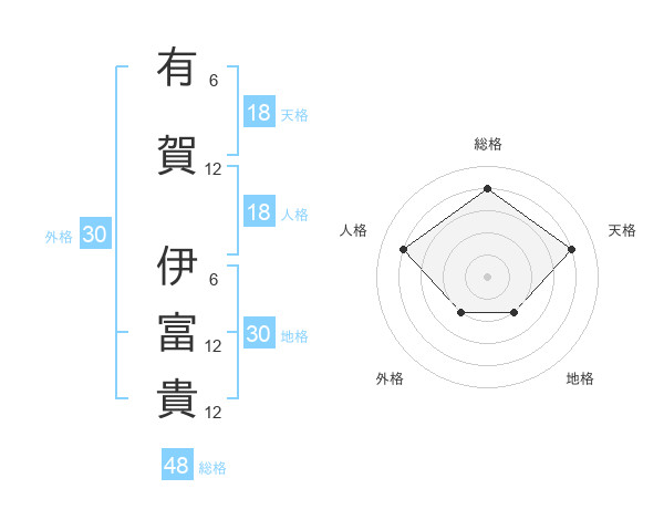 有賀 伊富貴さんを姓名の画数から五運を鑑定