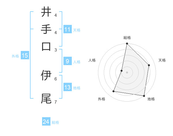 井手口 伊尾さんの総格は24画の5点!