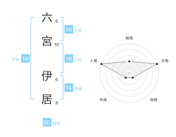 六宮 伊居さんを姓名の画数から五運を鑑定