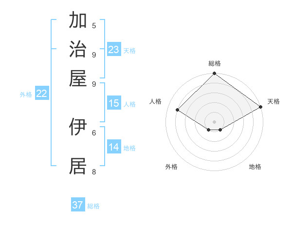 加治屋 伊居さんを姓名の画数から五運を鑑定