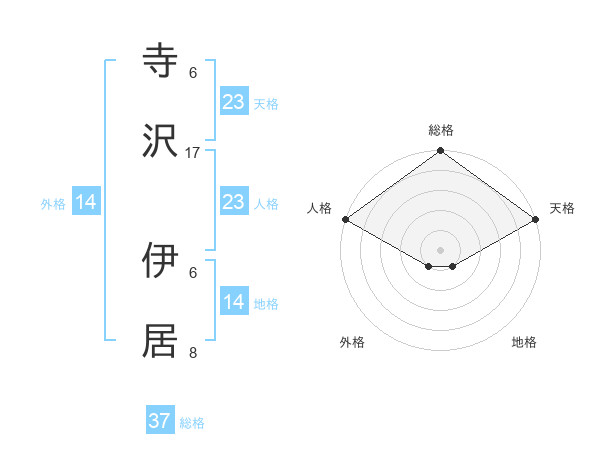 寺沢 伊居さんの総格は37画の5点!