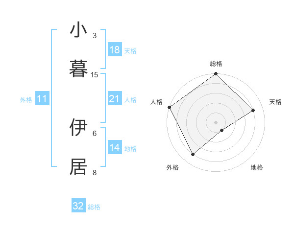 小暮 伊居さんを姓名の画数から五運を鑑定
