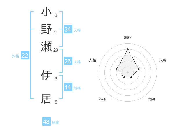 小野瀬 伊居さんを姓名の画数から五運を鑑定