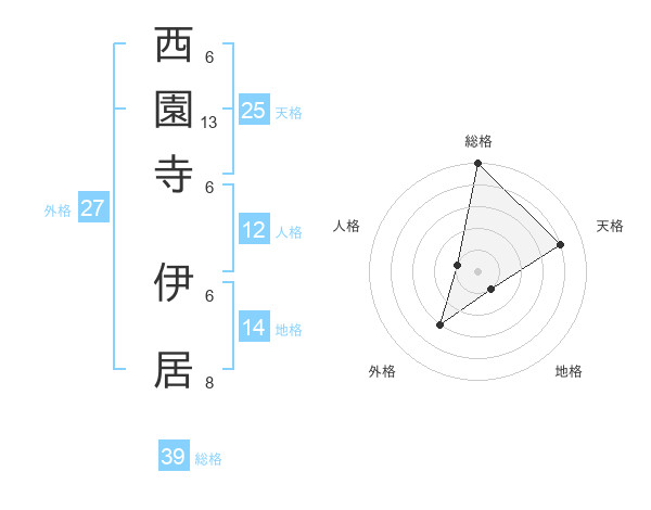 西園寺 伊居さんの総格は39画の5点!