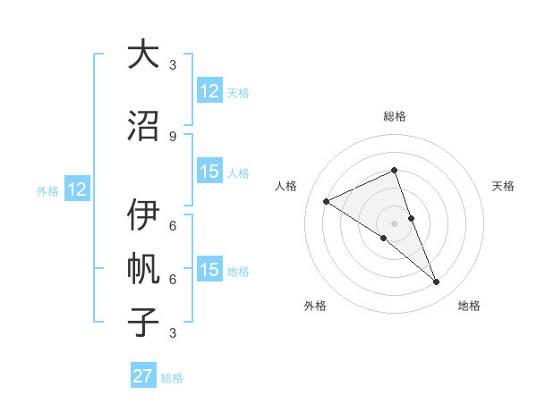 大沼 伊帆子さんを姓名の画数から五運を鑑定