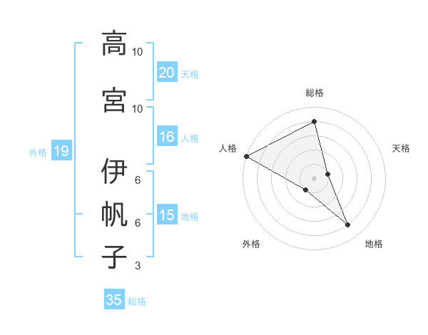 高宮 伊帆子さんを姓名の画数から五運を鑑定