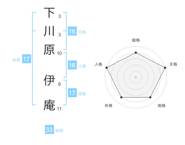 下川原 伊庵さんを姓名の画数から五運を鑑定