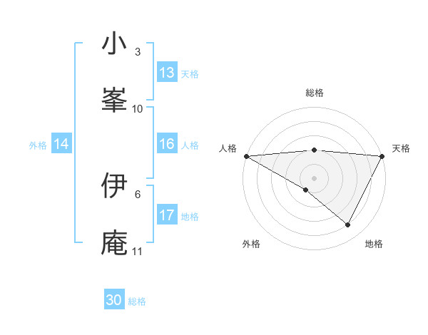 小峯 伊庵さんの総格は30画の2点!