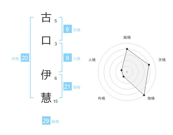 古口 伊慧さんを姓名の画数から五運を鑑定