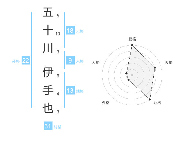 五十川 伊手也さんの総格は31画の5点!