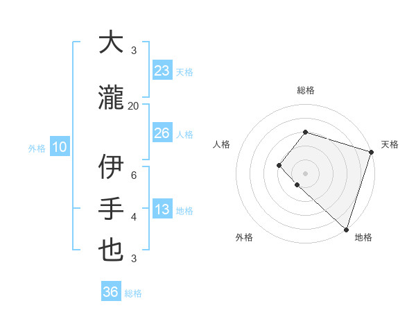 大瀧 伊手也さんを姓名の画数から五運を鑑定