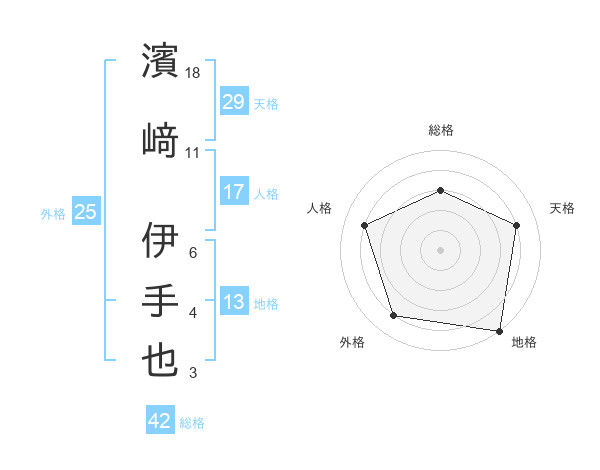 濱﨑 伊手也さんを姓名の画数から五運を鑑定