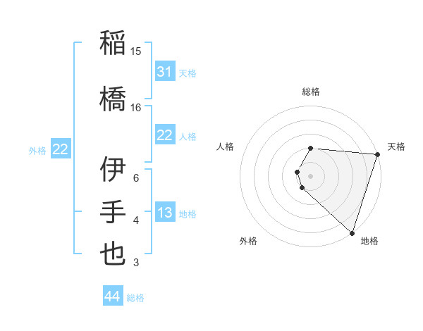 稲橋 伊手也さんの総格は44画の2点