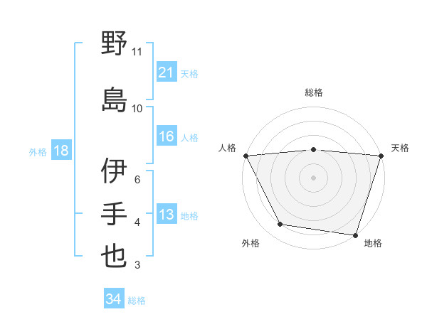野島 伊手也さんを姓名の画数から五運を鑑定
