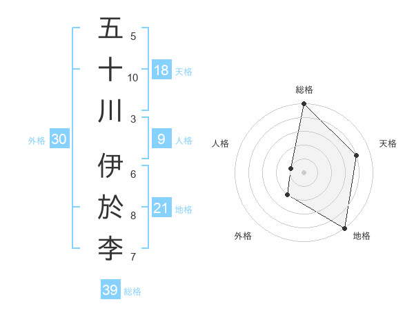 五十川 伊於李さんの総格は39画の5点!