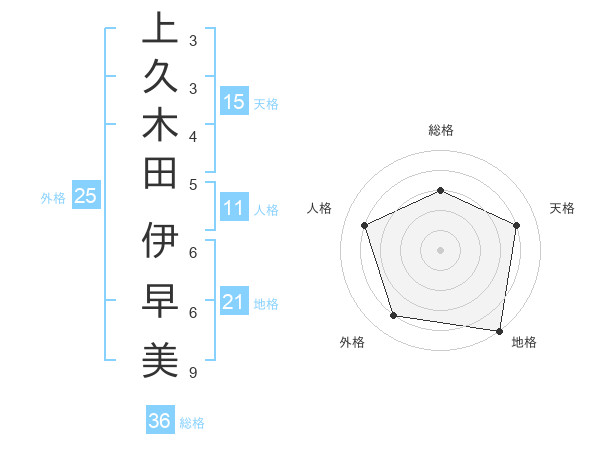 上久木田 伊早美さんを姓名の画数から五運を鑑定