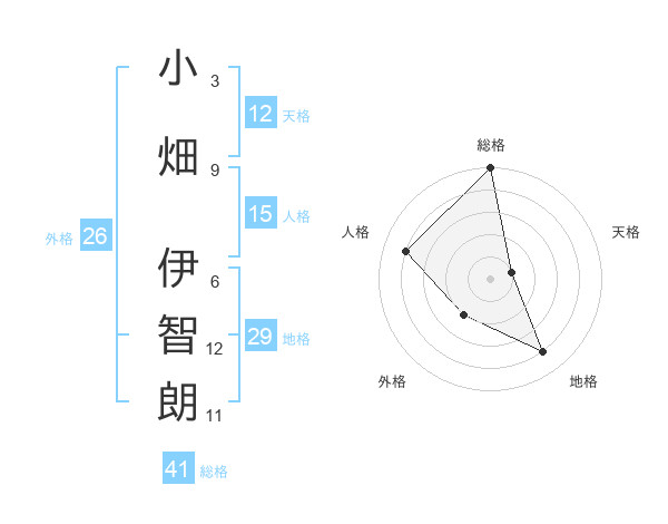 小畑 伊智朗さんを姓名の画数から五運を鑑定