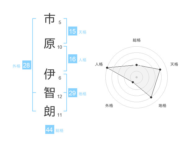 市原 伊智朗さんの地格は29画の4点